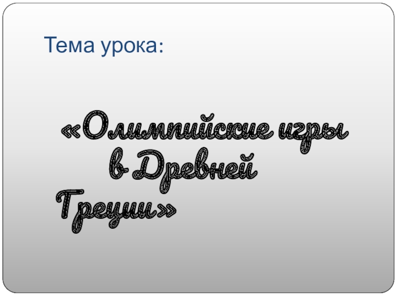 Тема урока: «Олимпийские игры     в Древней Греции»