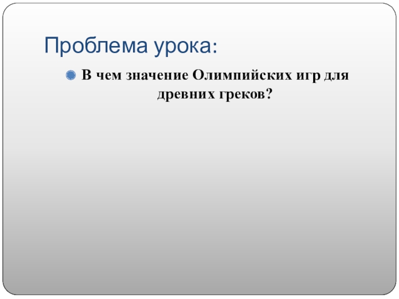 Проблема урока:В чем значение Олимпийских игр для древних греков?
