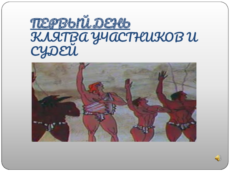 Слайд 15ПЕРВЫЙ ДЕНЬ КЛЯТВА УЧАСТНИКОВ И СУДЕЙ