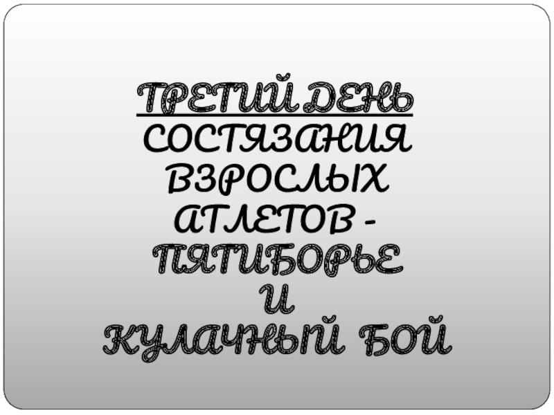 ТРЕТИЙ ДЕНЬ СОСТЯЗАНИЯ ВЗРОСЛЫХ АТЛЕТОВ - ПЯТИБОРЬЕ И КУЛАЧНЫЙ БОЙ