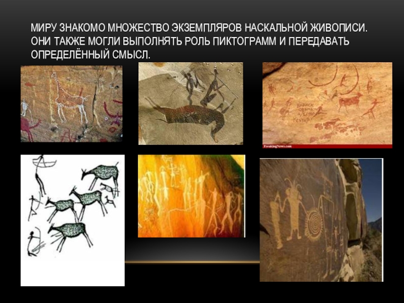 Слайд 11Миру знакомо множество экземпляров наскальной живописи. Они также могли выполнять роль