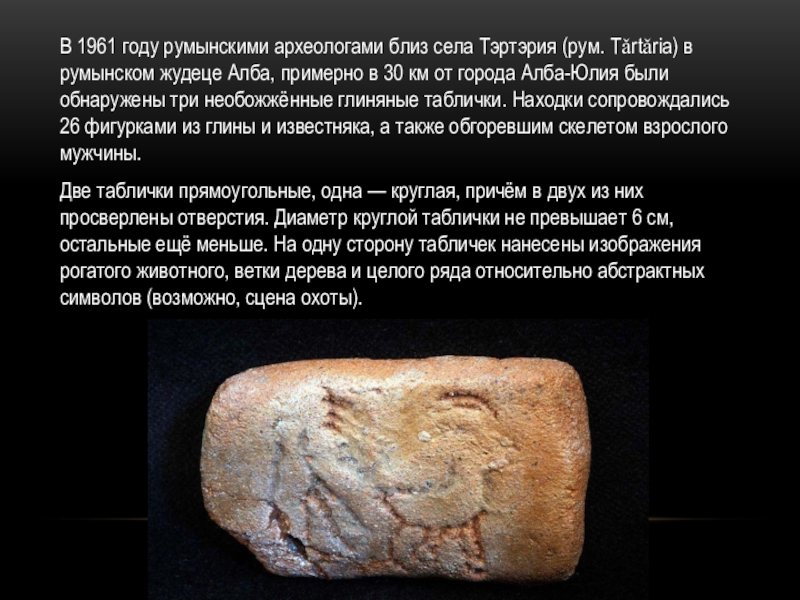Слайд 7В 1961 году румынскими археологами близ села Тэртэрия (рум. Tǎrtǎria) в