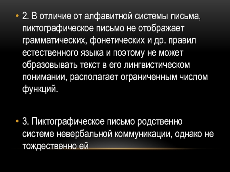 3. Пиктографическое письмо родственно системе невербальной коммуникации, однако не тождественно ей