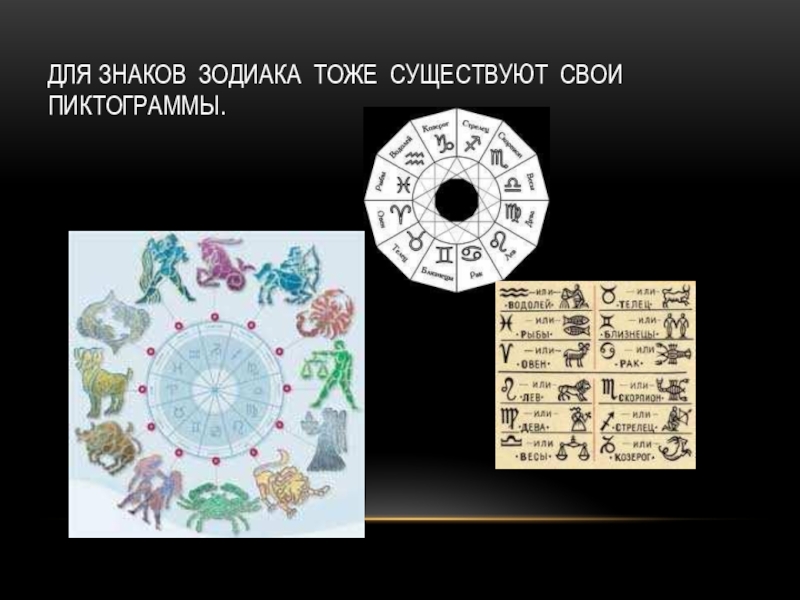 Слайд 19Для знаков зодиака тоже существуют свои пиктограммы.