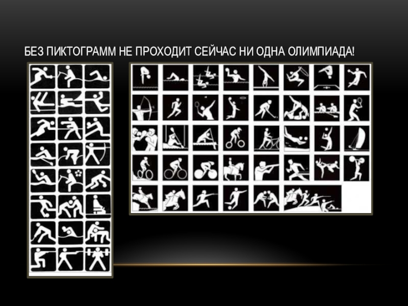 Слайд 14Без пиктограмм не проходит сейчас ни одна олимпиада!