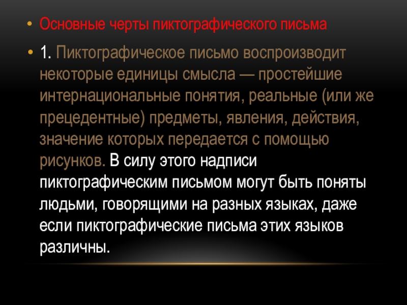 1. Пиктографическое письмо воспроизводит некоторые единицы смысла —