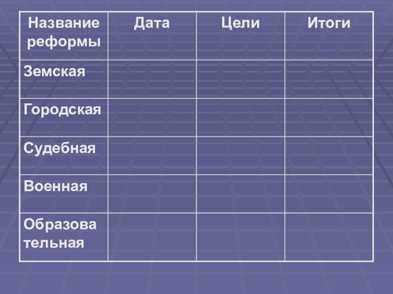 Презентация, доклад к уроку истории по теме Либеральные реформы Александра II (8 класс)