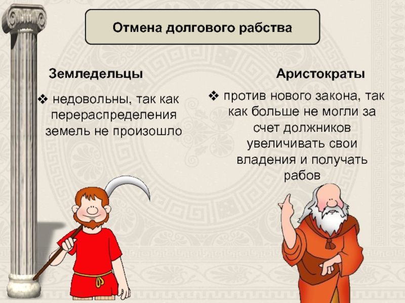 против нового закона, так как больше не могли за счет должников увеличивать свои владения и получать рабов