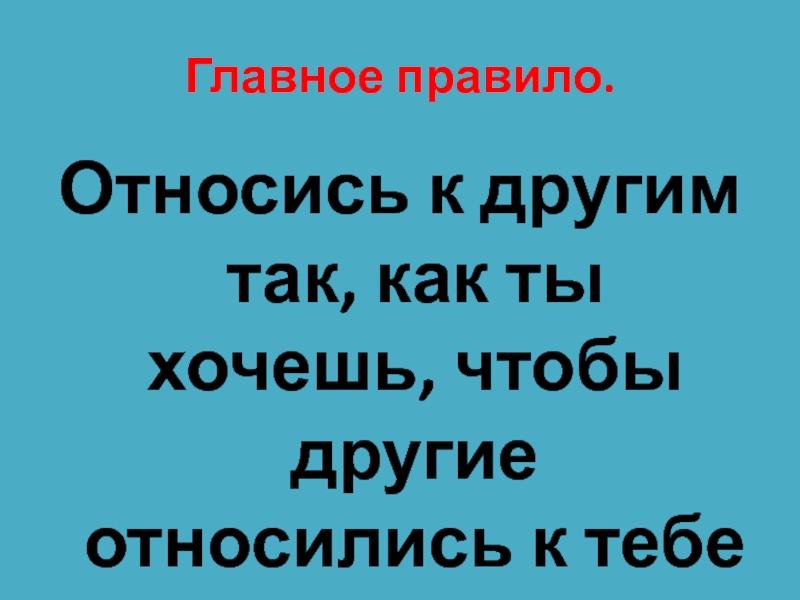 Главное правило.Относись к другим так, как ты хочешь, чтобы другие относились к тебе
