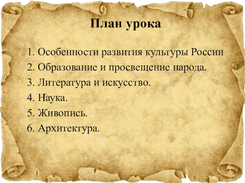 Образовательная: представить школьникам основные направления, которые наблюдались в культурной жизни России