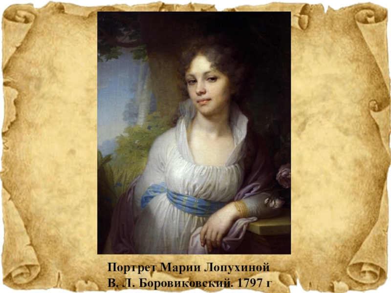 Владимир Лукич Боровиковский (1757-1825) впервые дает на портретах, кроме изображения образа, также пейзажный фон.