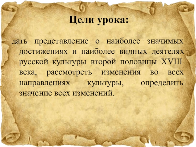 деятелях русской культуры второй половины XVIII века, рассмотреть изменения во всех направлениях культуры, определить значение всех изменений.