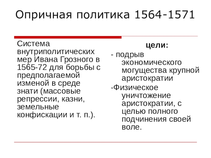 -Физическое уничтожение аристократии, с целью полного подчинения своей воле.