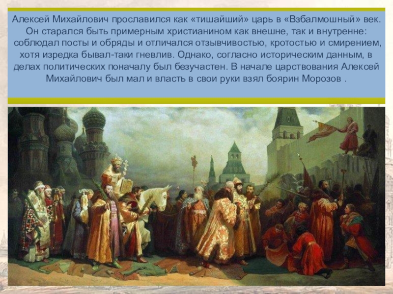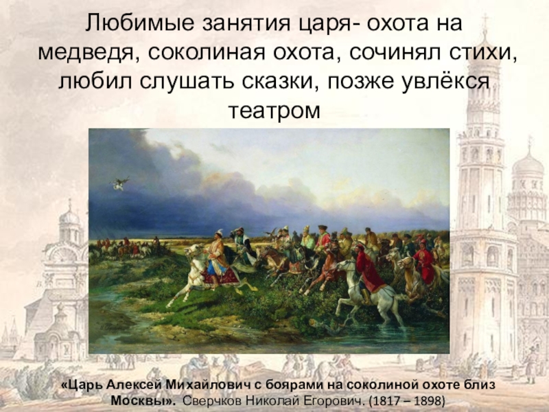 «Царь Алексей Михайлович с боярами на соколиной охоте близ Москвы». Сверчков Николай Егорович. (1817 – 1898)