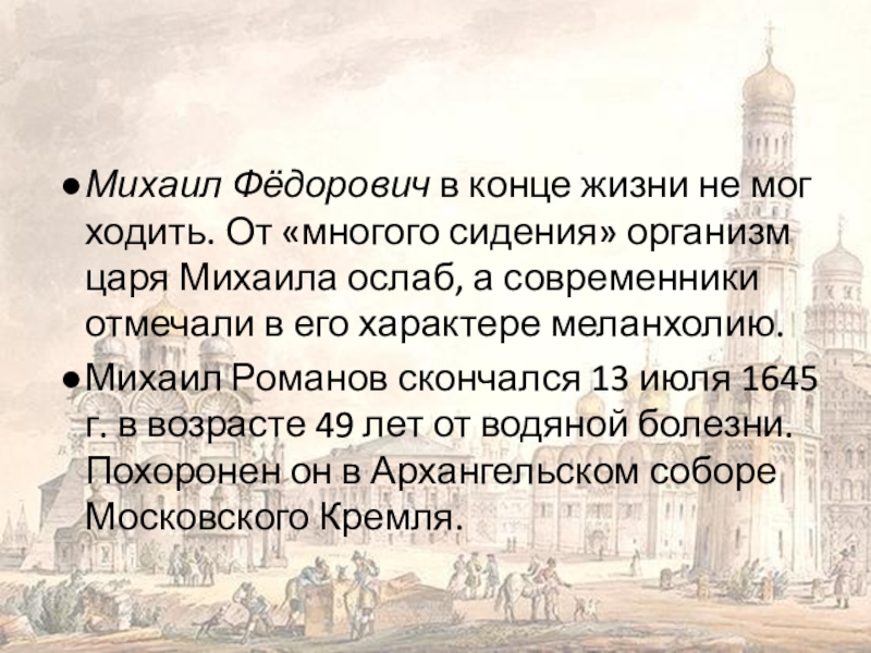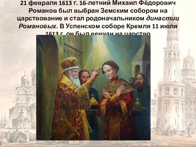 В малолетство царя Михаила (1613-1619 гг.) страной правили его мать Марфа и её родня из бояр Салтыковых.