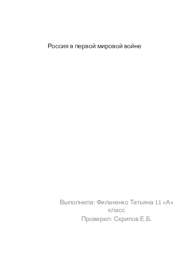 Выполнила: Фильченко Татьяна 11 «А» класс