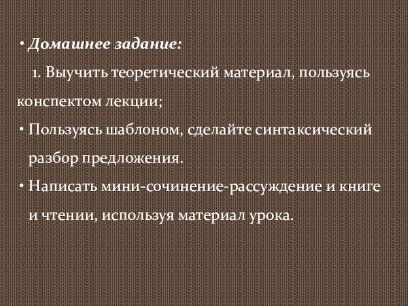 1. Выучить теоретический материал, пользуясь конспектом лекции;