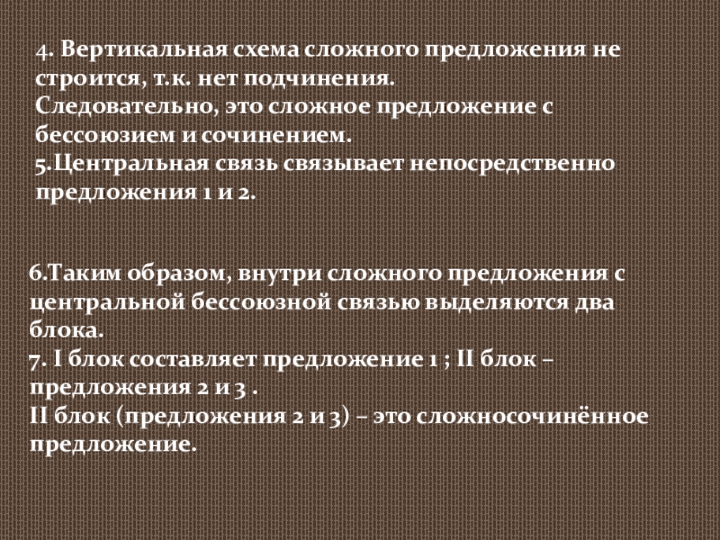 6.Таким образом, внутри сложного предложения с центральной бессоюзной связью выделяются два блока.