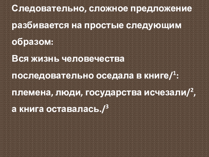 Слайд 13Следовательно, сложное предложение разбивается на простые следующим образом: