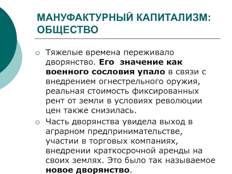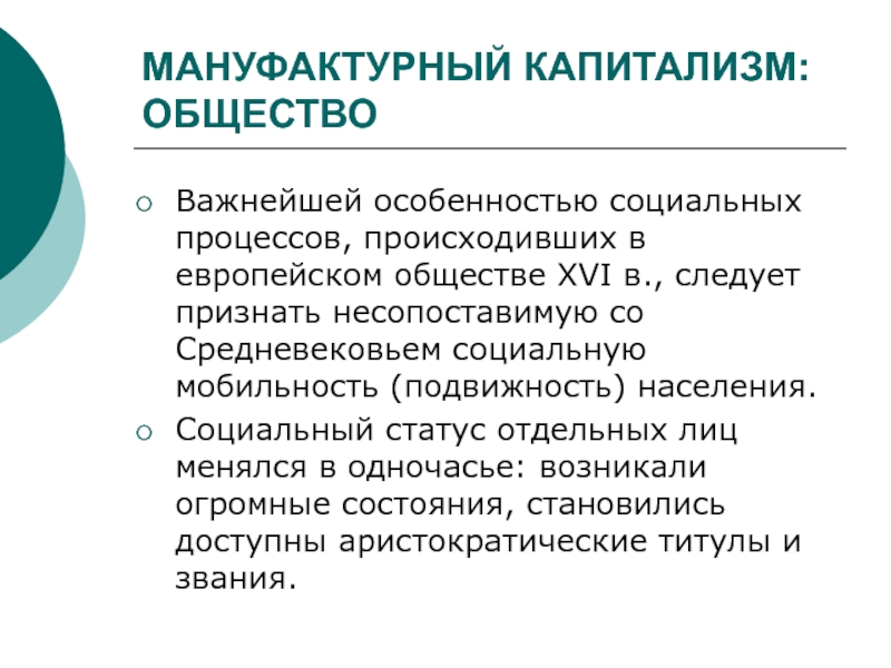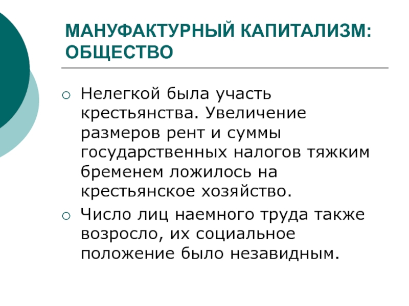Слайд 22МАНУФАКТУРНЫЙ КАПИТАЛИЗМ: ОБЩЕСТВО