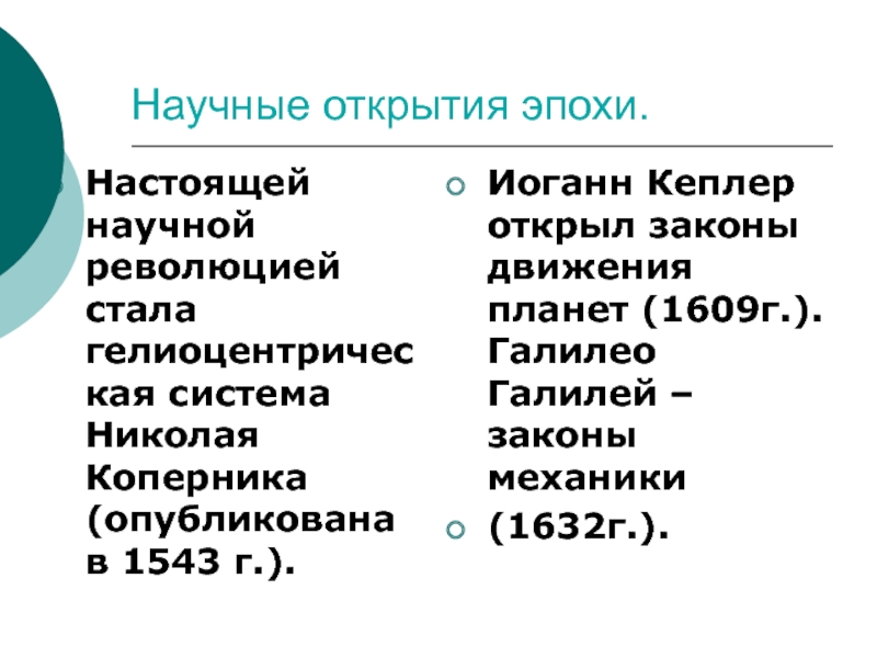 Иоганн Кеплер открыл законы движения планет (1609г.). Галилео Галилей – законы механики