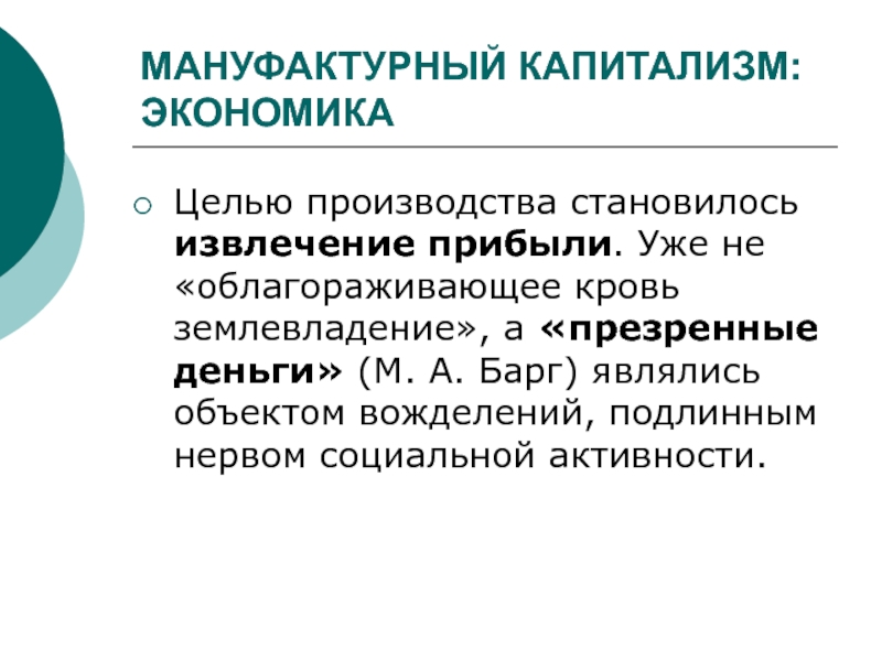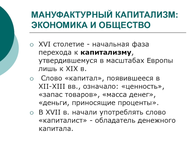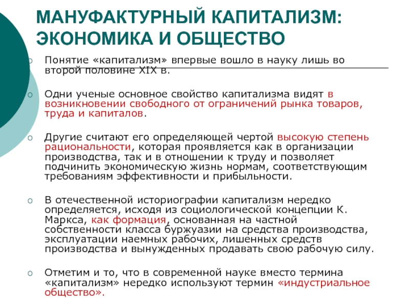 Слайд 24МАНУФАКТУРНЫЙ КАПИТАЛИЗМ: ЭКОНОМИКА И ОБЩЕСТВО