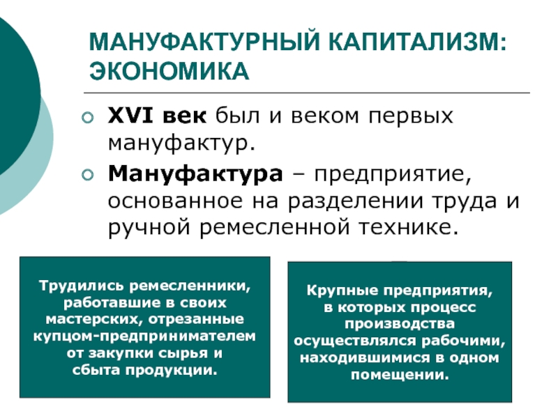 Слайд 17МАНУФАКТУРНЫЙ КАПИТАЛИЗМ: ЭКОНОМИКА