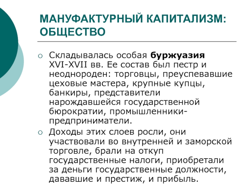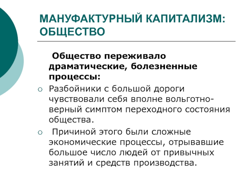 Слайд 21МАНУФАКТУРНЫЙ КАПИТАЛИЗМ: ОБЩЕСТВО