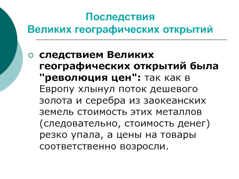 как в Европу хлынул поток дешевого золота и серебра из заокеанских земель стоимость этих металлов (следовательно, стоимость денег) резко упала, а цены на товары соответственно возросли.