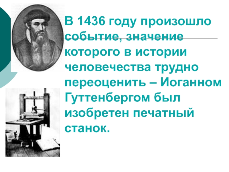 Слайд 26В 1436 году произошло событие, значение которого в истории человечества трудно