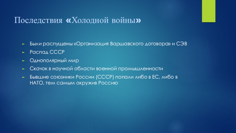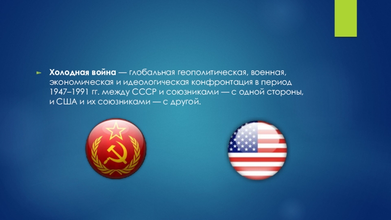 «Соединенные Штаты находятся на вершине мировой силы… От Штеттина на Балтике до Триеста на Адриатике. На весь континент опустился железный занавес. Коммунистические партии или пятые колоны представляют собой всё возрастающий вызов и опасность для христианской цивилизации. Я не верю, что Россия хочет войны, она хочет плодов войны и безграничного распространения своей мощи и доктрины».