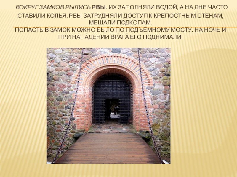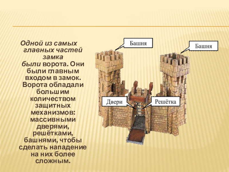 Слайд 8Одной из самых главных частей замка были ворота. Они были главным входом