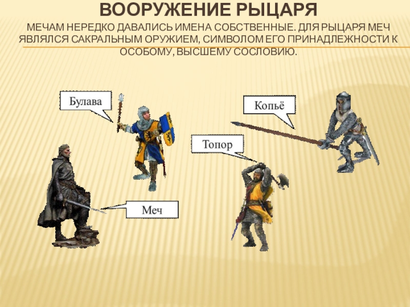 Мечам нередко давались имена собственные. Для рыцаря меч являлся сакральным