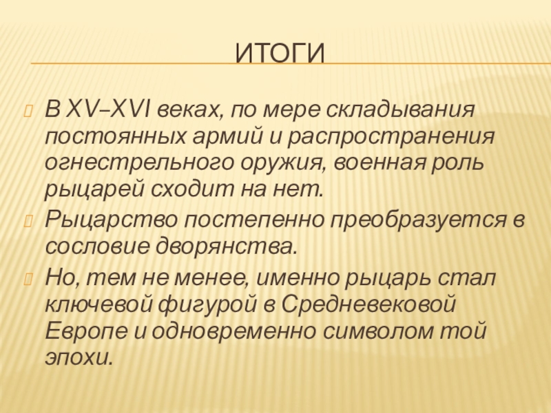 Рыцарство постепенно преобразуется в сословие дворянства.