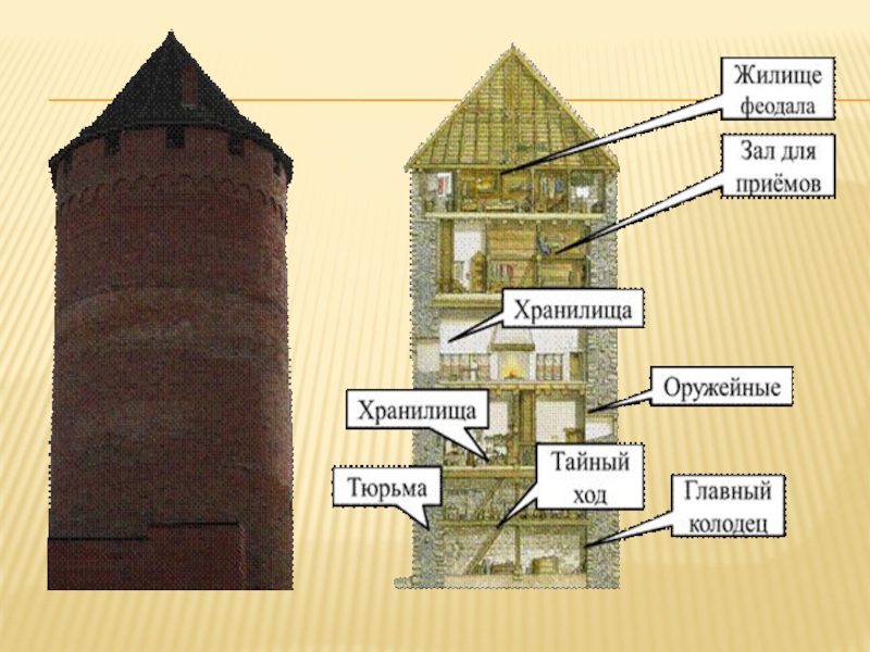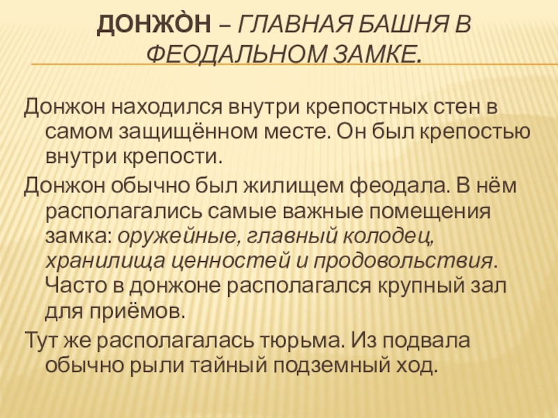 Слайд 5Донжо̀н – главная башня в феодальном замке.