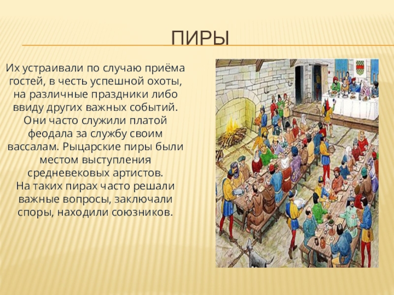 Они часто служили платой феодала за службу своим вассалам. Рыцарские пиры были местом выступления средневековых артистов.