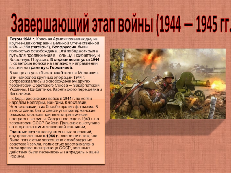 Слайд 7Завершающий этап войны (1944 — 1945 гг.)