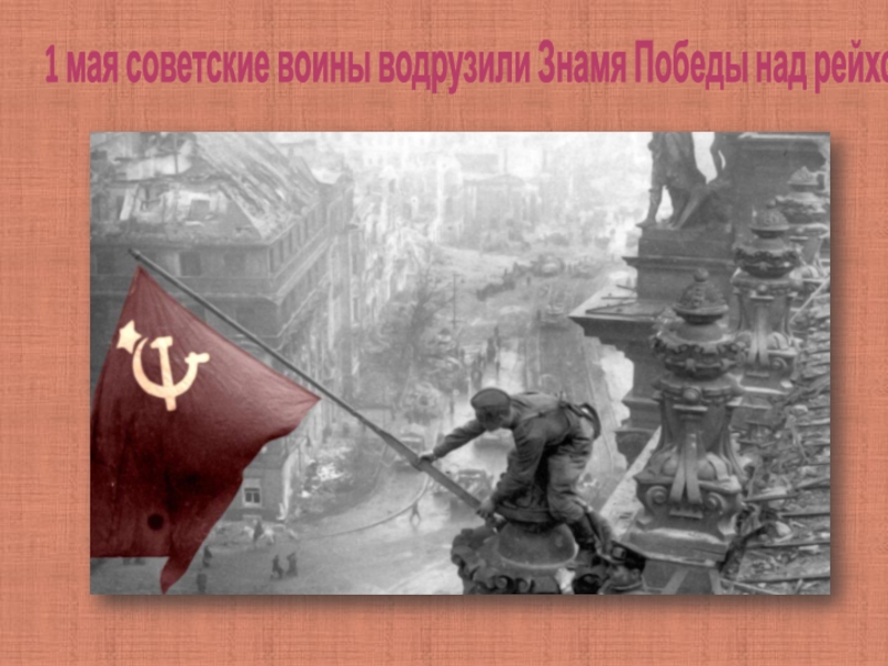 Слайд 81 мая советские воины водрузили Знамя Победы над рейхстагом.