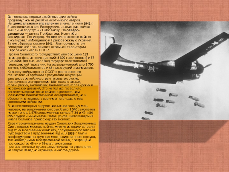 Слайд 5За несколько первых дней немецкие войска продвинулись на десятки и сотни