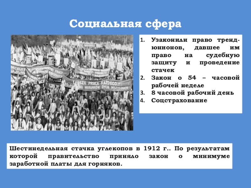 Узаконили право тренд-юнионов, давшее им право на судебную защиту и проведение стачек