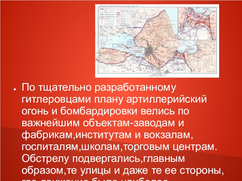 Слайд 2По тщательно разработанному гитлеровцами плану артиллерийский огонь и бомбардировки велись по