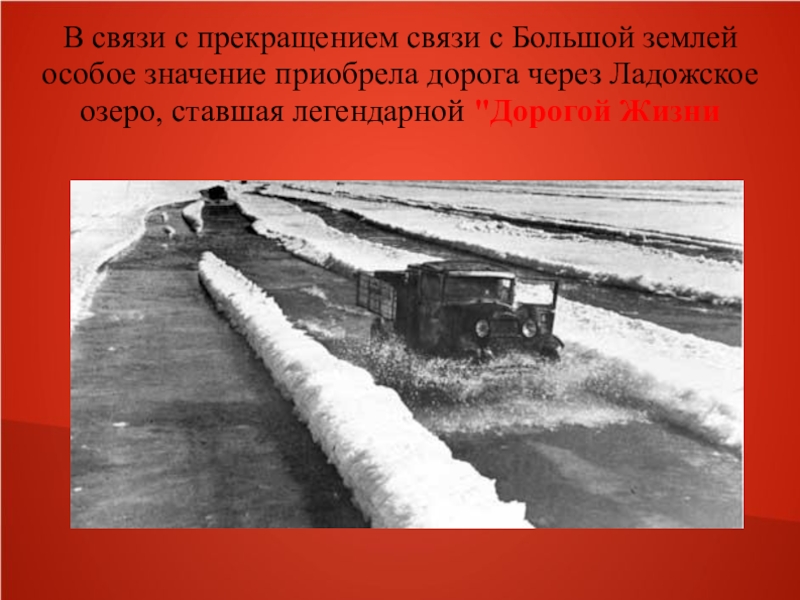 дорога через Ладожское озеро, ставшая легендарной "Дорогой Жизни