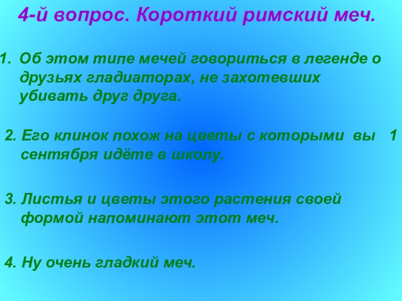 2. Его клинок похож на цветы с которыми вы 1 сентября идёте в школу.