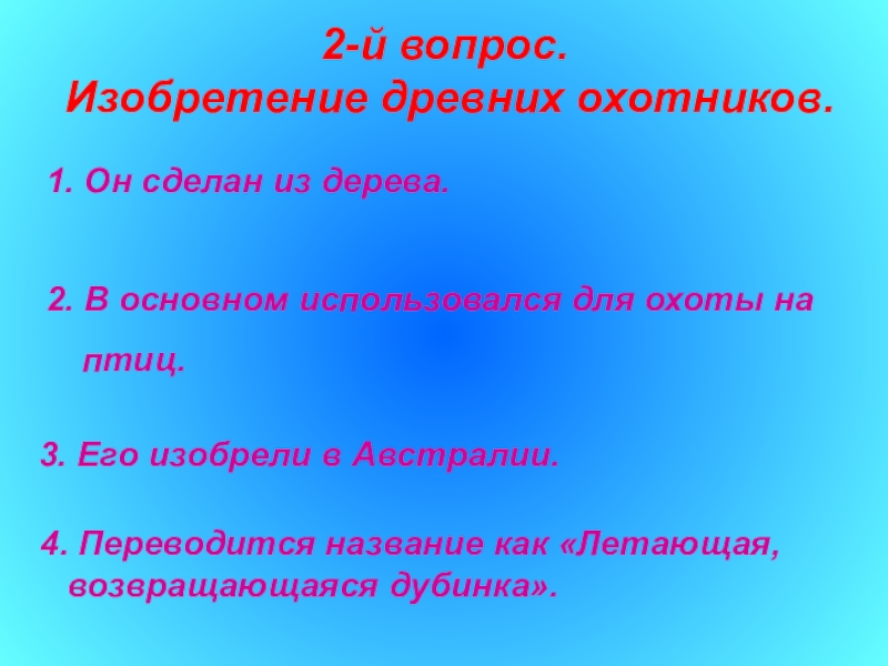 4. Переводится название как «Летающая, возвращающаяся дубинка».