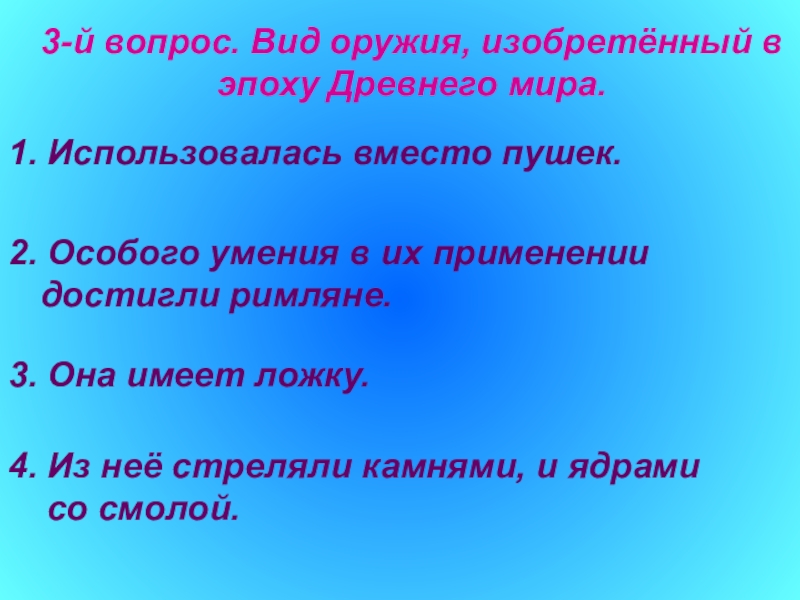 4. Из неё стреляли камнями, и ядрами со смолой.