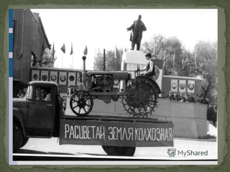 Слайд 22Траурный митинг посвященный смерти Сталина у его памятника. До памятника Сталину