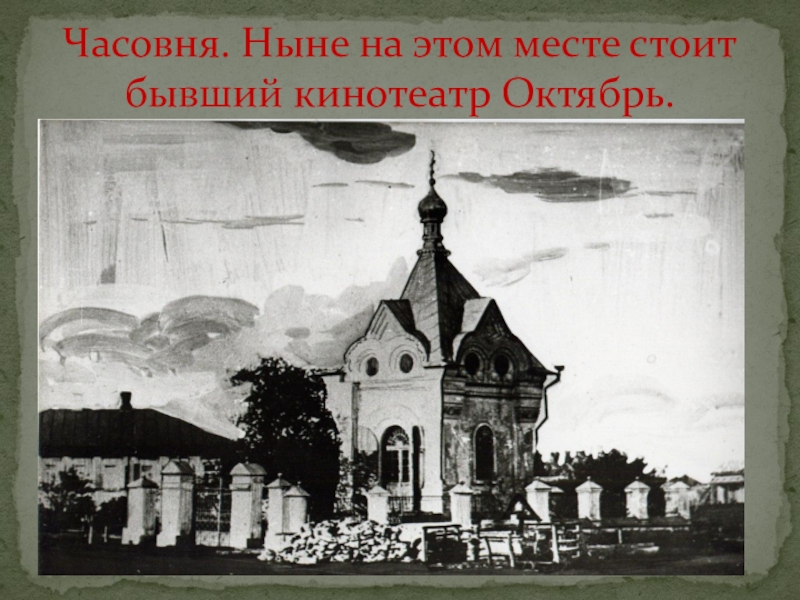 Слайд 25Часовня. Ныне на этом месте стоит бывший кинотеатр Октябрь.