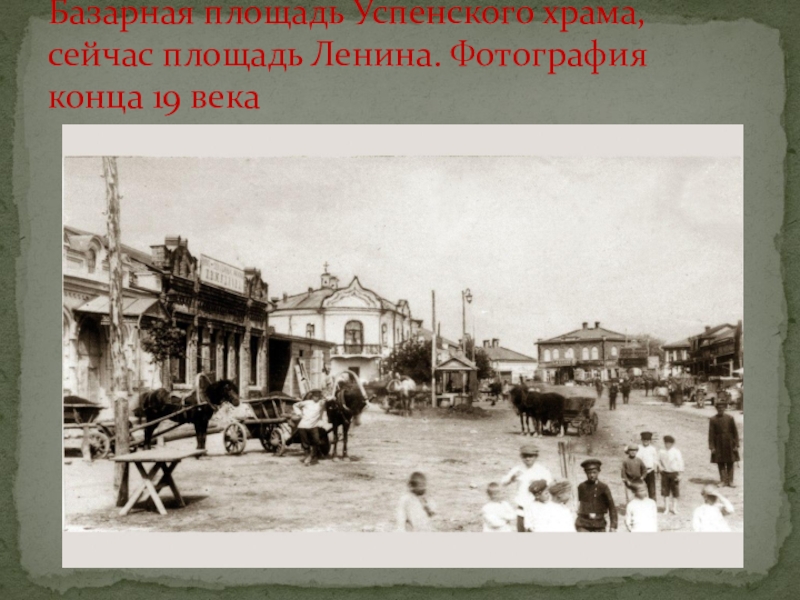 Слайд 11Базарная площадь Успенского храма, сейчас площадь Ленина. Фотография конца 19 века