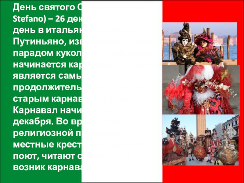 Слайд 10День святого Стефана (Santo Stefano) – 26 декабря.В этот день в