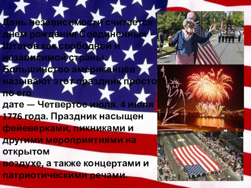 Слайд 4День независимости считается днем рождения Соединенных Штатов как свободной и
